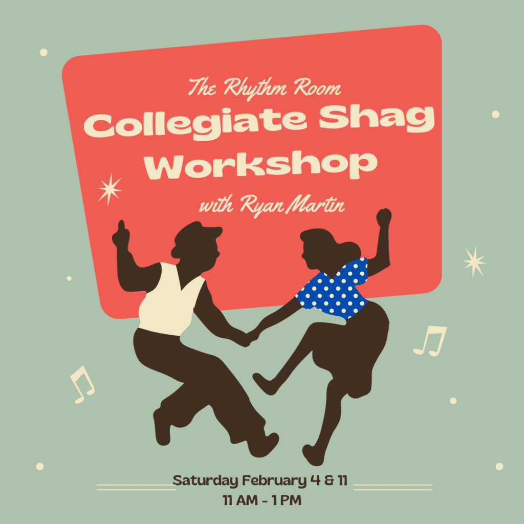 Come and join us as Ryan Martin teaches the fundamental of Collegiate Shag over the course of two Saturdays in February. Date and Time: Saturday, Feb 4, 11am – 1pm…