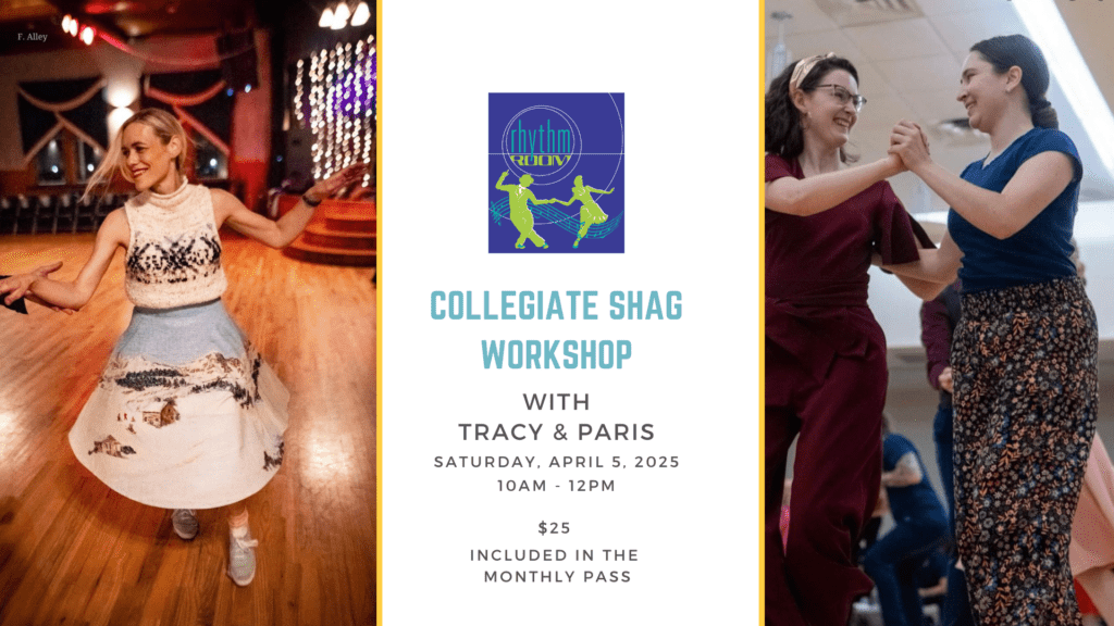 Join us Saturday, April 5 from 10am-12pm for a 2-hour Collegiate Shag Workshop with Tracy & Paris! This is an all level workshop for those new and old to this…