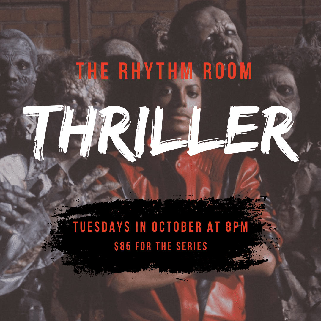 Join The Rhythm Room's adult Jazz dance class to learn Michael Jackson's "Thriller" music video! Michael Jackson's Thriller (the Original) Tuesdays Oct 1, 8, 15, 22, 29 from 8pm - 9pm To register, CLICK HERE!