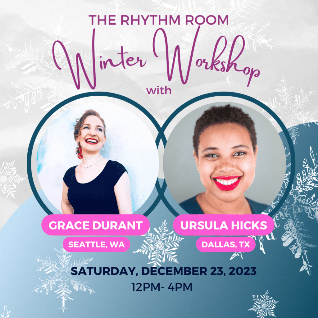 Join us Saturday, December 23, 2023 for a one day workshop with the graceful and talented Lindy Hop instructors, Grace Durant and Ursula Hicks! Time 12pm-4pm Where The Rhythm Room…